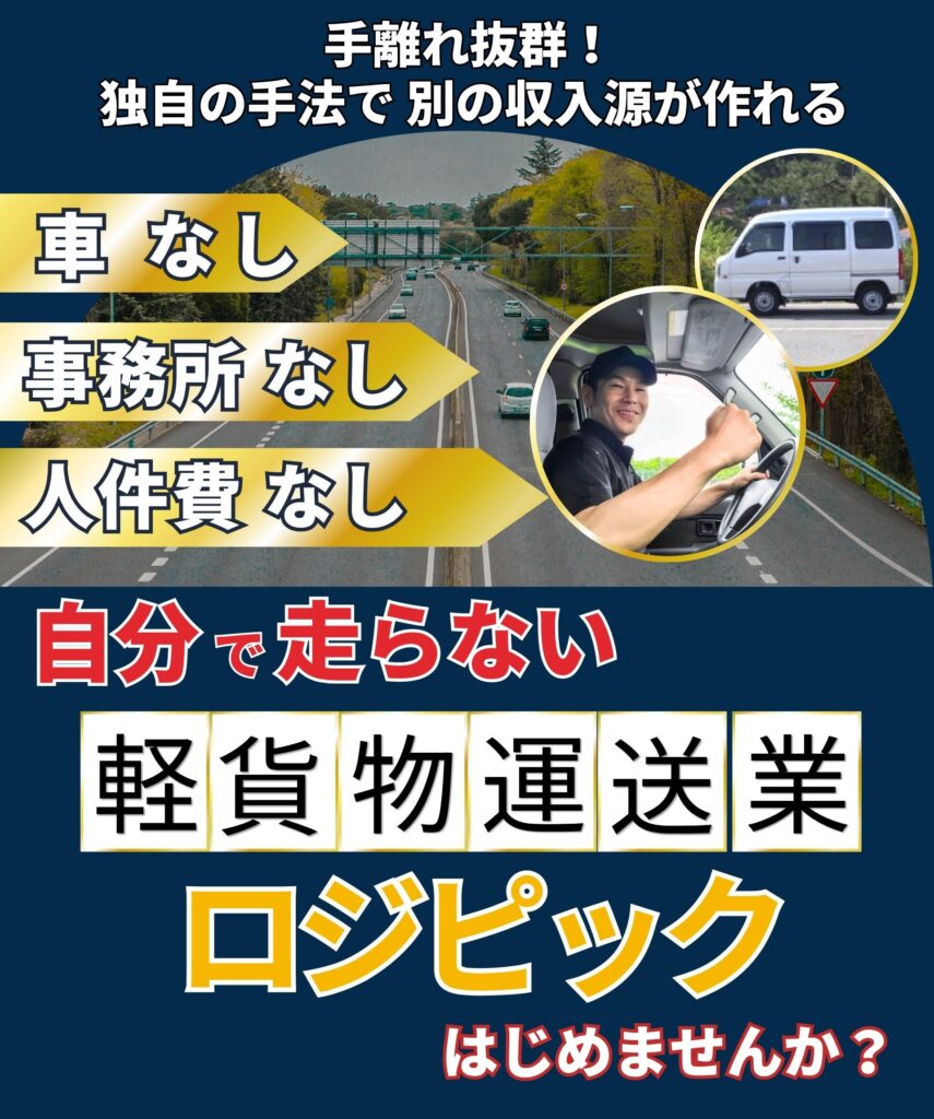 通常、個人で運送業を始めると 自分がドライバーとして走る必要がありますが、 ロジピックは違います。